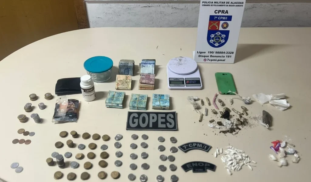 Operação em Campo Grande, AL, resulta na apreensão de expressiva quantia em dinheiro e drogas Uma operação policial realizada em Campo Grande, no Agreste de Alagoas, culminou na apreensão de drogas e mais de R$ 15 mil em espécie nesta quinta-feira (12). Um homem de 46 anos foi preso em flagrante durante a ação. A […]